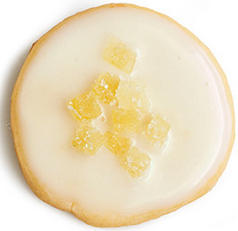 Make the icing: Put the remaining 1/3 cup confectioners’ sugar in a bowl; stir in 2 to 3 teaspoons lemon juice, a little at a time, until the icing is spreadable. Spread on the cookies and top with crystallized ginger; let set 30 minutes.