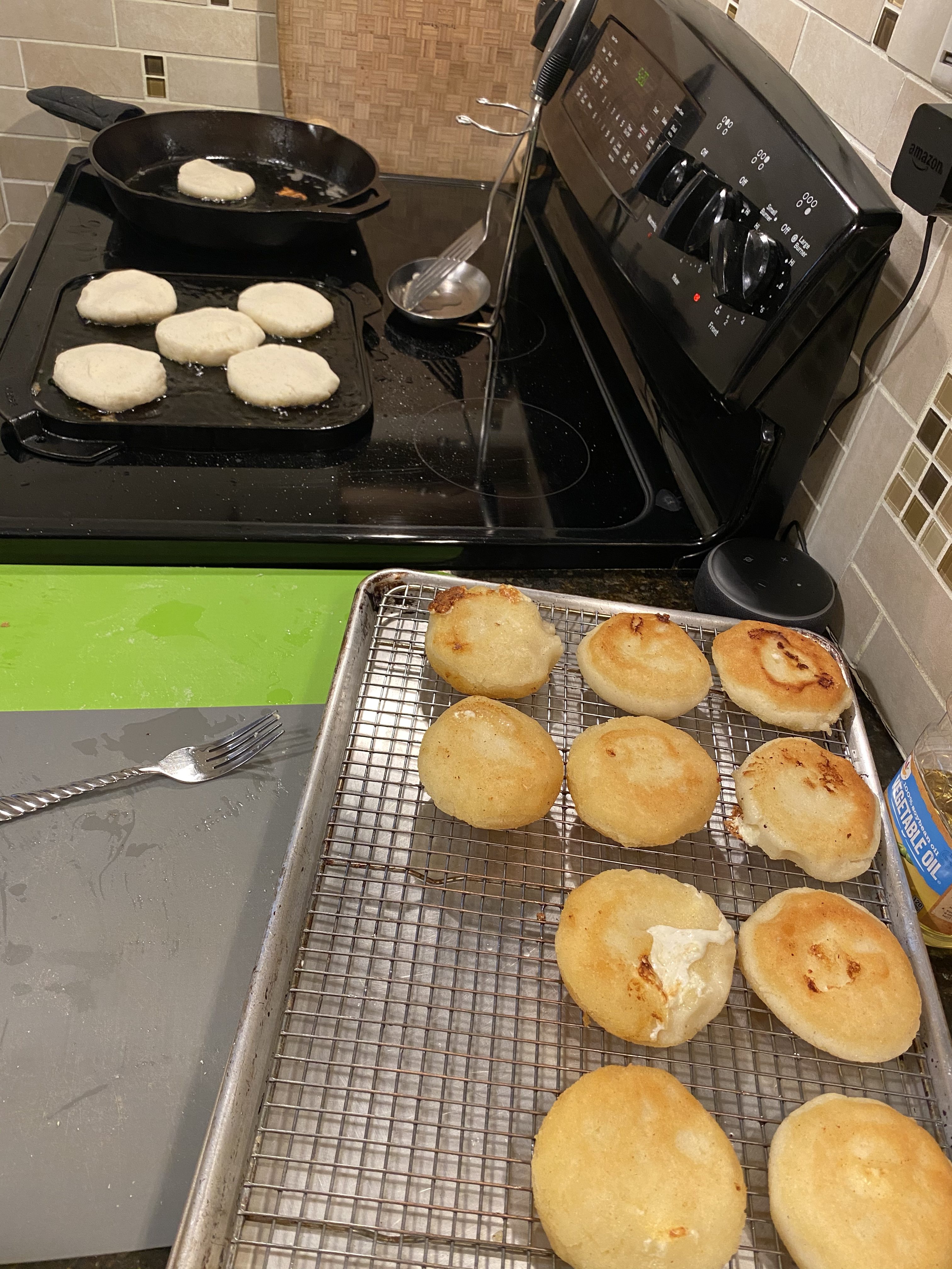 - Heat the oil in a wok or small frying pan over medium-high heat (the oil should be at least 1 inch deep). When bubbles begin to rise from the bottom of the pan, try dropping in a 1/4 tsp. of the mixture. If it sizzles right away, the oil is ready.