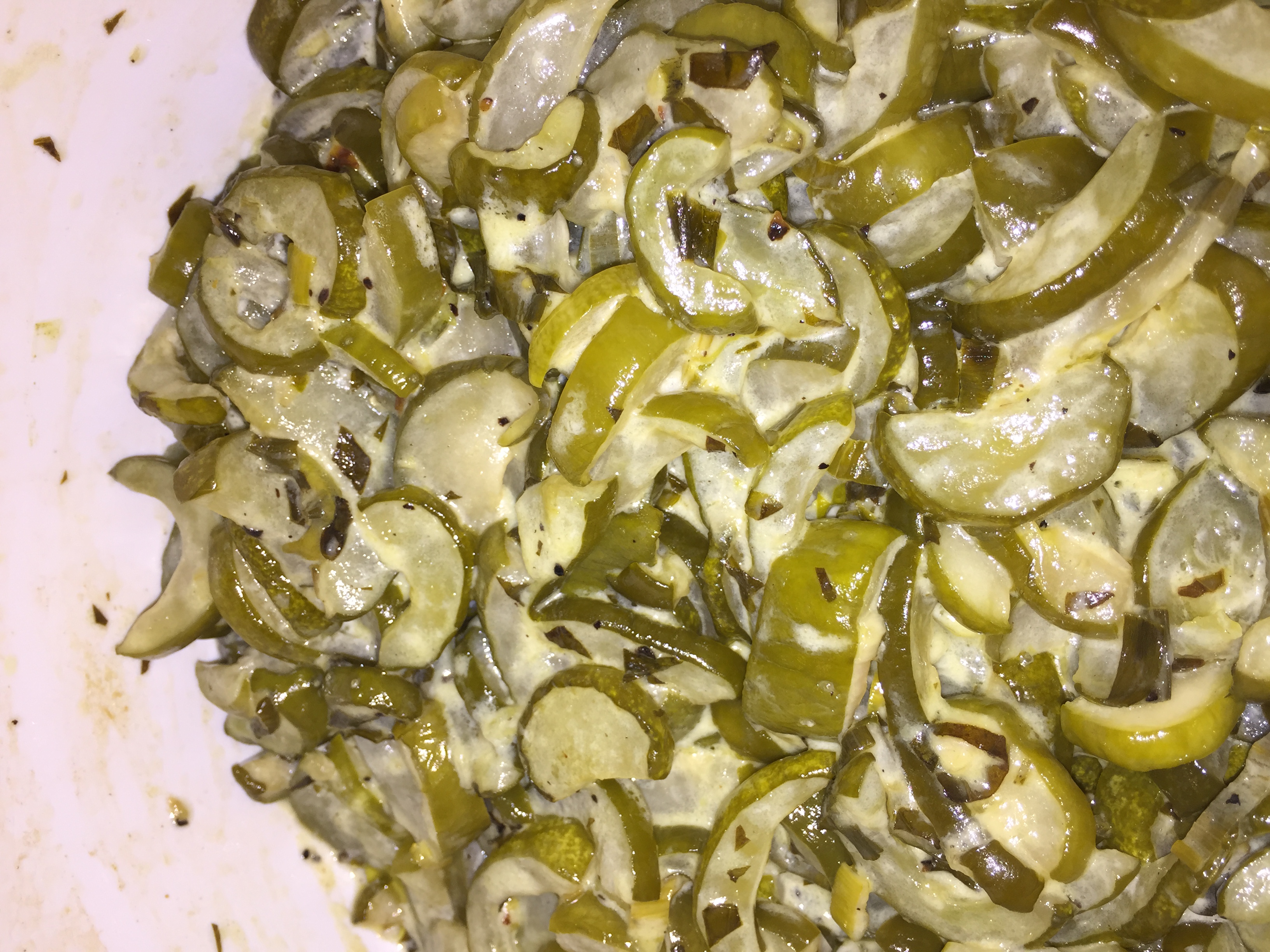 This recipe (supposedly)takes 15 minutes to put together – and even faster if you have a slicer. It is great to make ahead then just reheat when you need it, it keeps well for around 3 days.