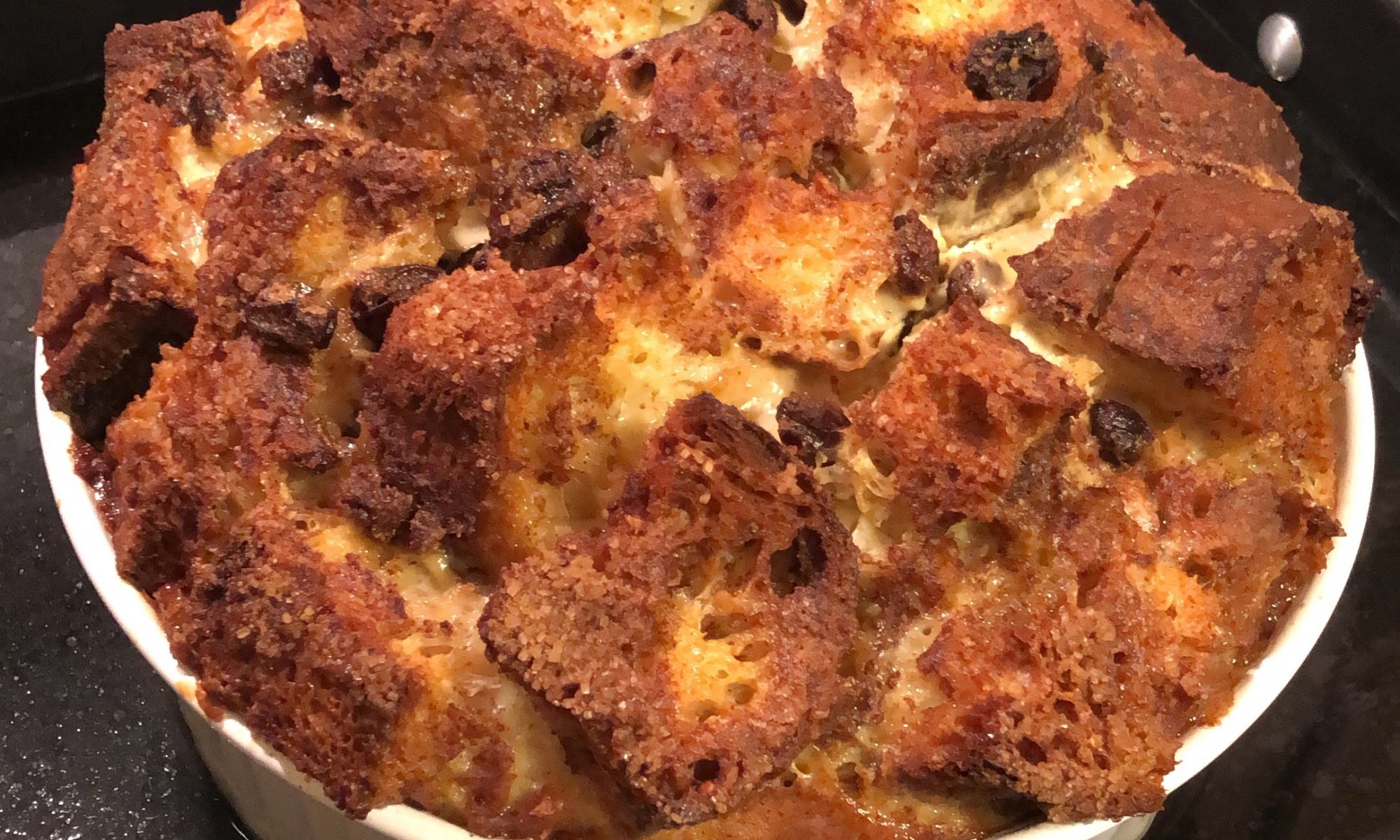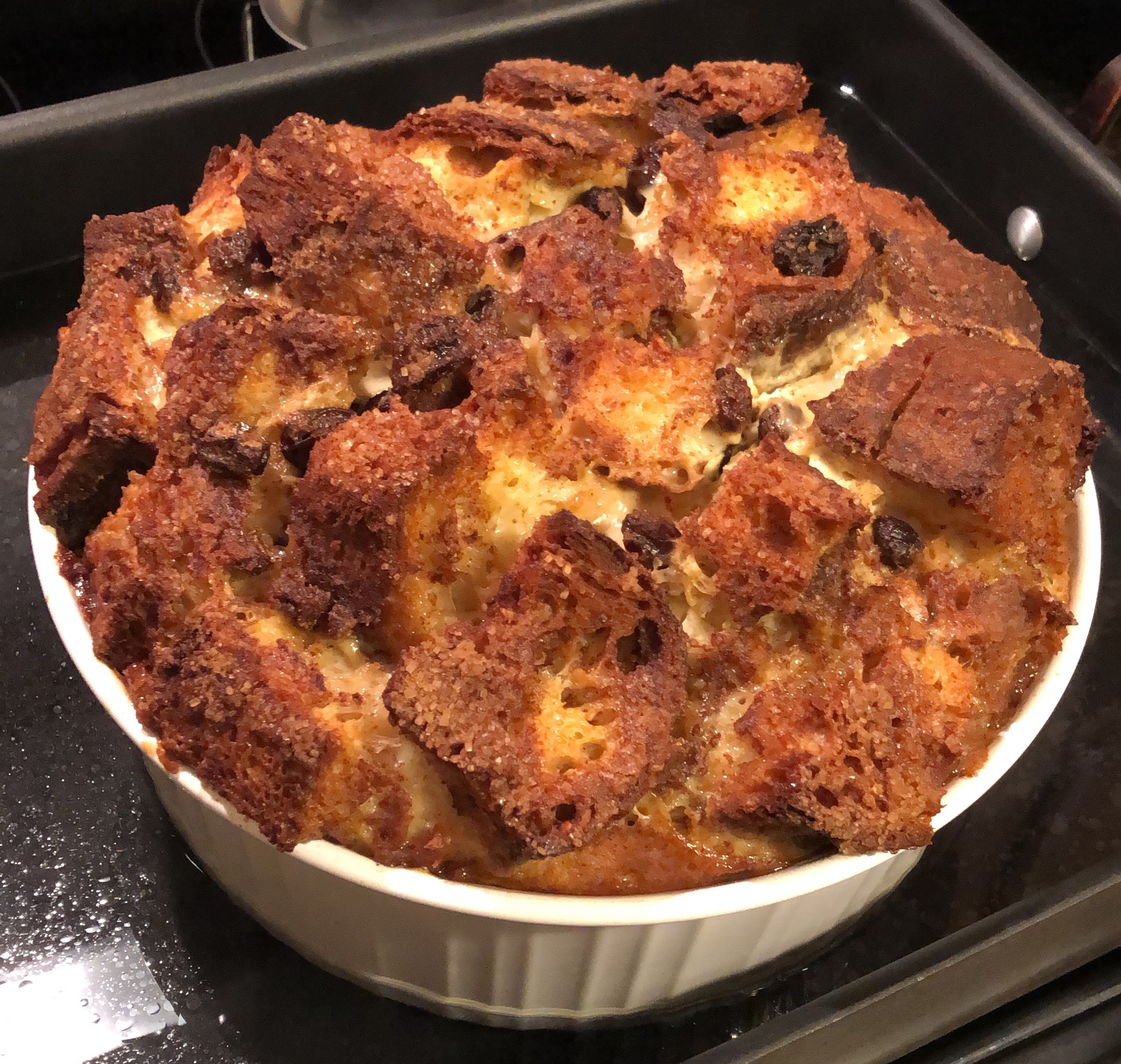 - Divide the bread and raisins evenly among twelve 6-oz. ramekins. Pour the custard over the top of each ramekin until almost full. Submerge the bread to help soak up the custard. Let sit for 10 minutes, then pour any remaining custard into the ramekins until almost full.